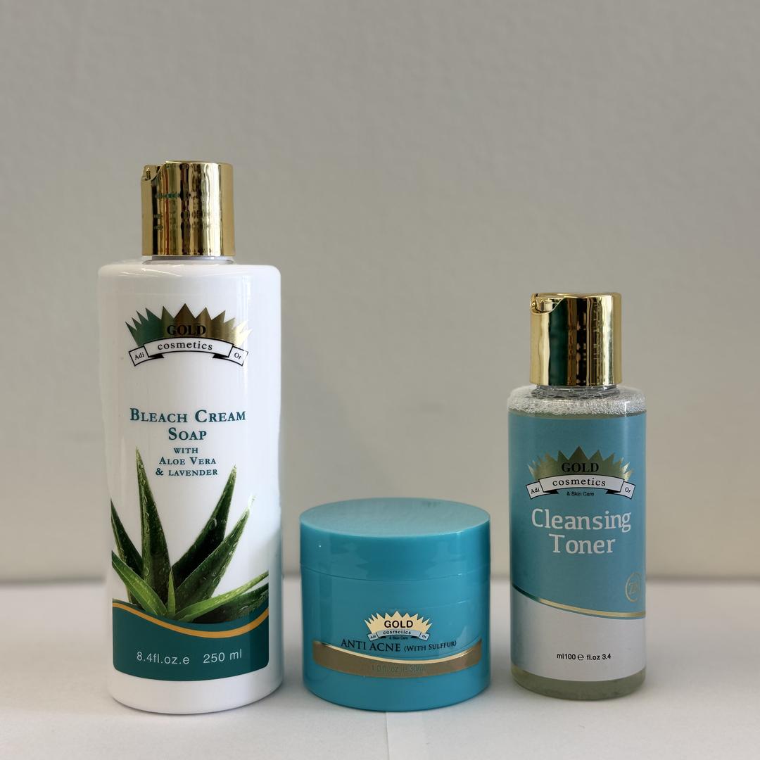 quickly penetrates the skin pores and the result is a highly stimulated cellular activity that gives your skin a glow The kit contains Bleach soap, Bleach Toner, and Acne cream.