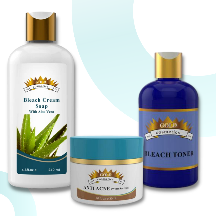 quickly penetrates the skin pores and the result is a highly stimulated cellular activity that gives your skin a glow The kit contains Bleach soap, Bleach Toner, and Acne cream.